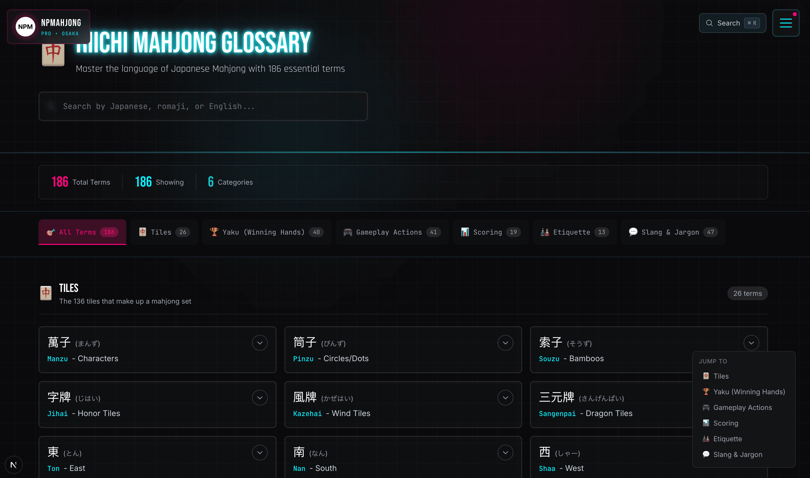 - 180+ essential terms covering every aspect of Riichi Mahjong